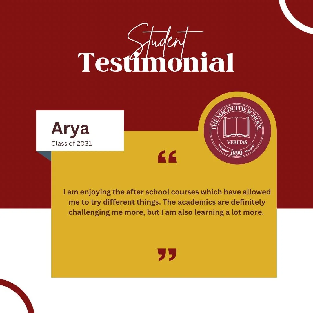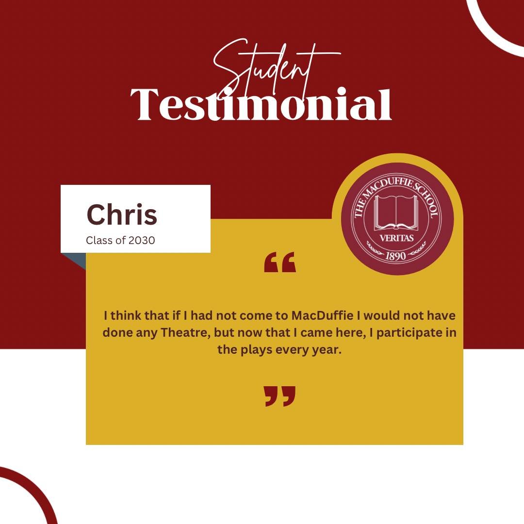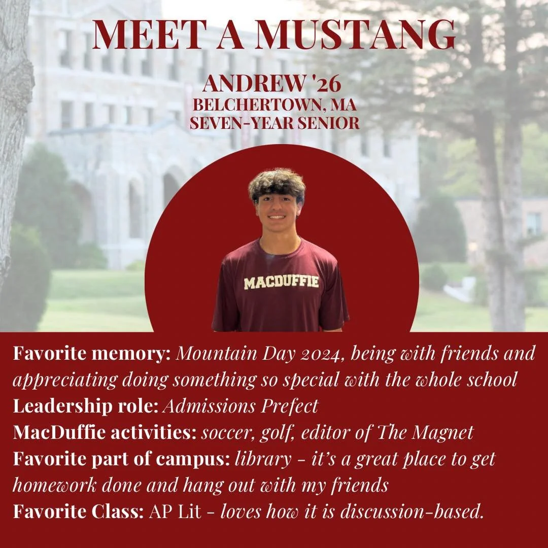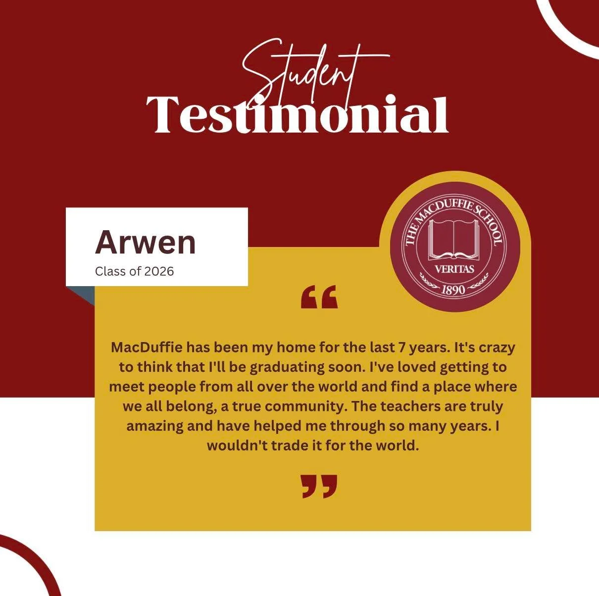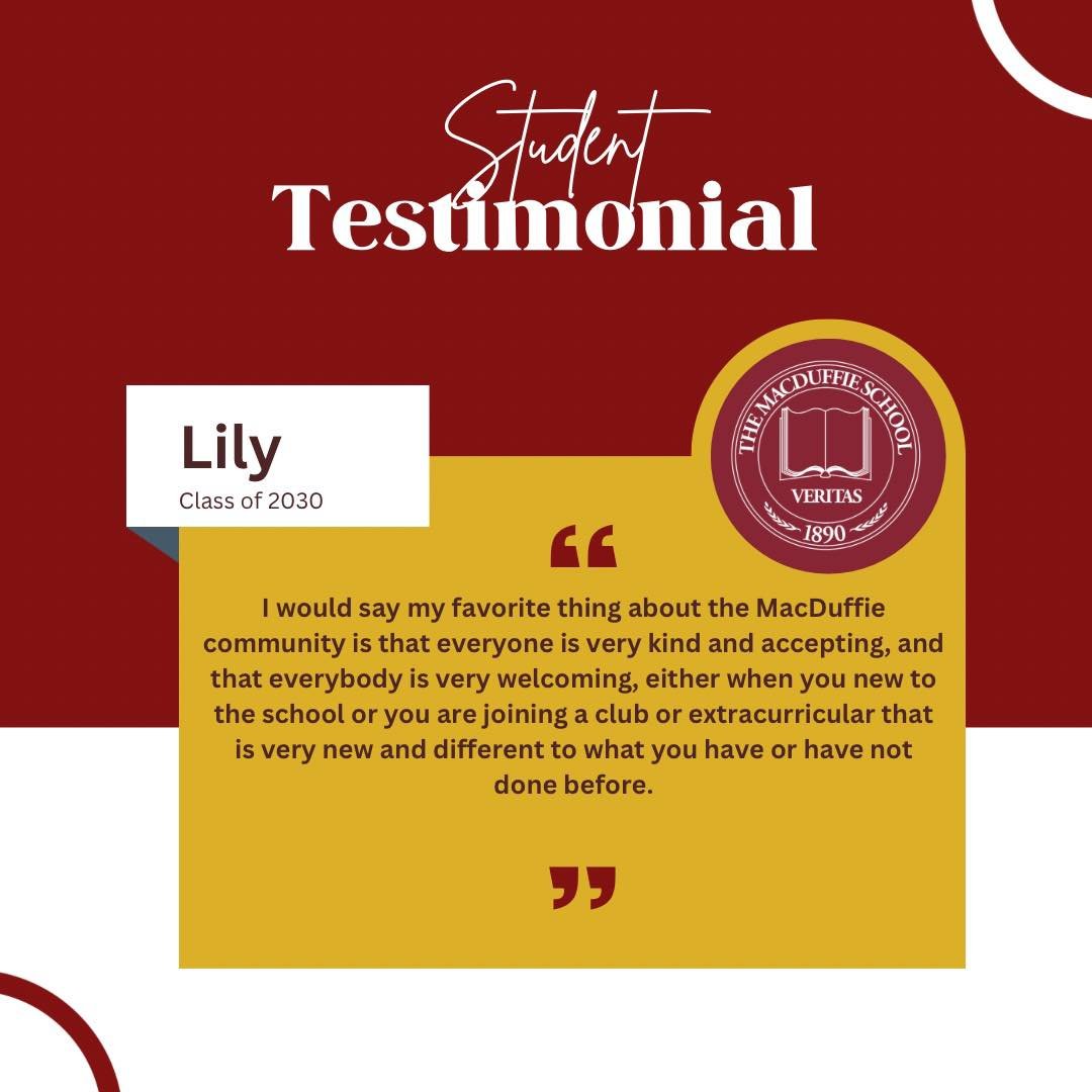 “I’m very grateful for the teachers and the community for teaching me so much throughout the years. MacDuffie’s college prep and counseling are also so great, so I strongly recommend this school!”
