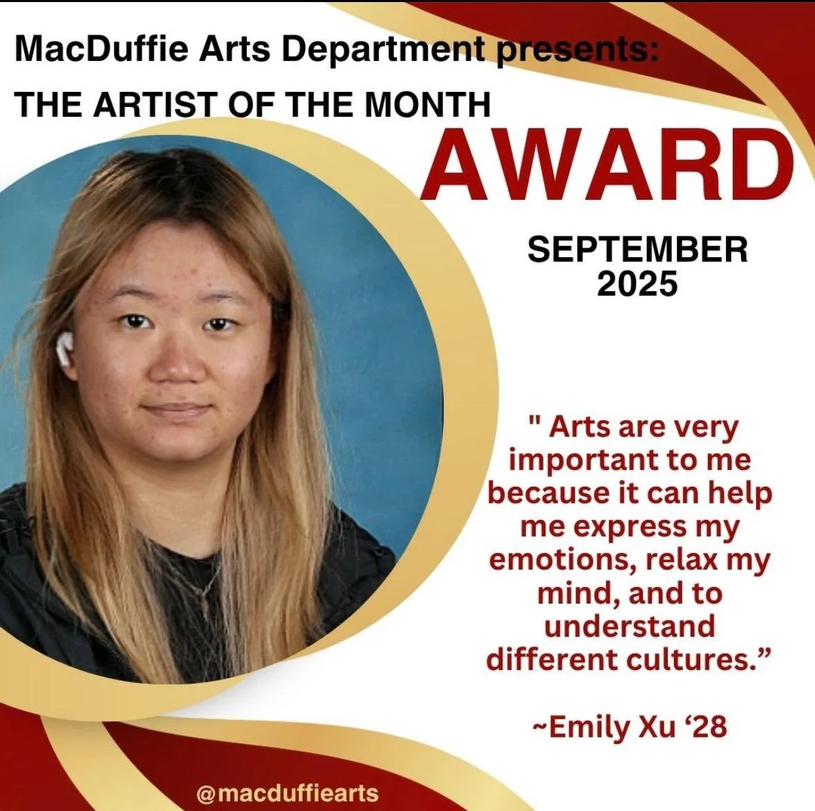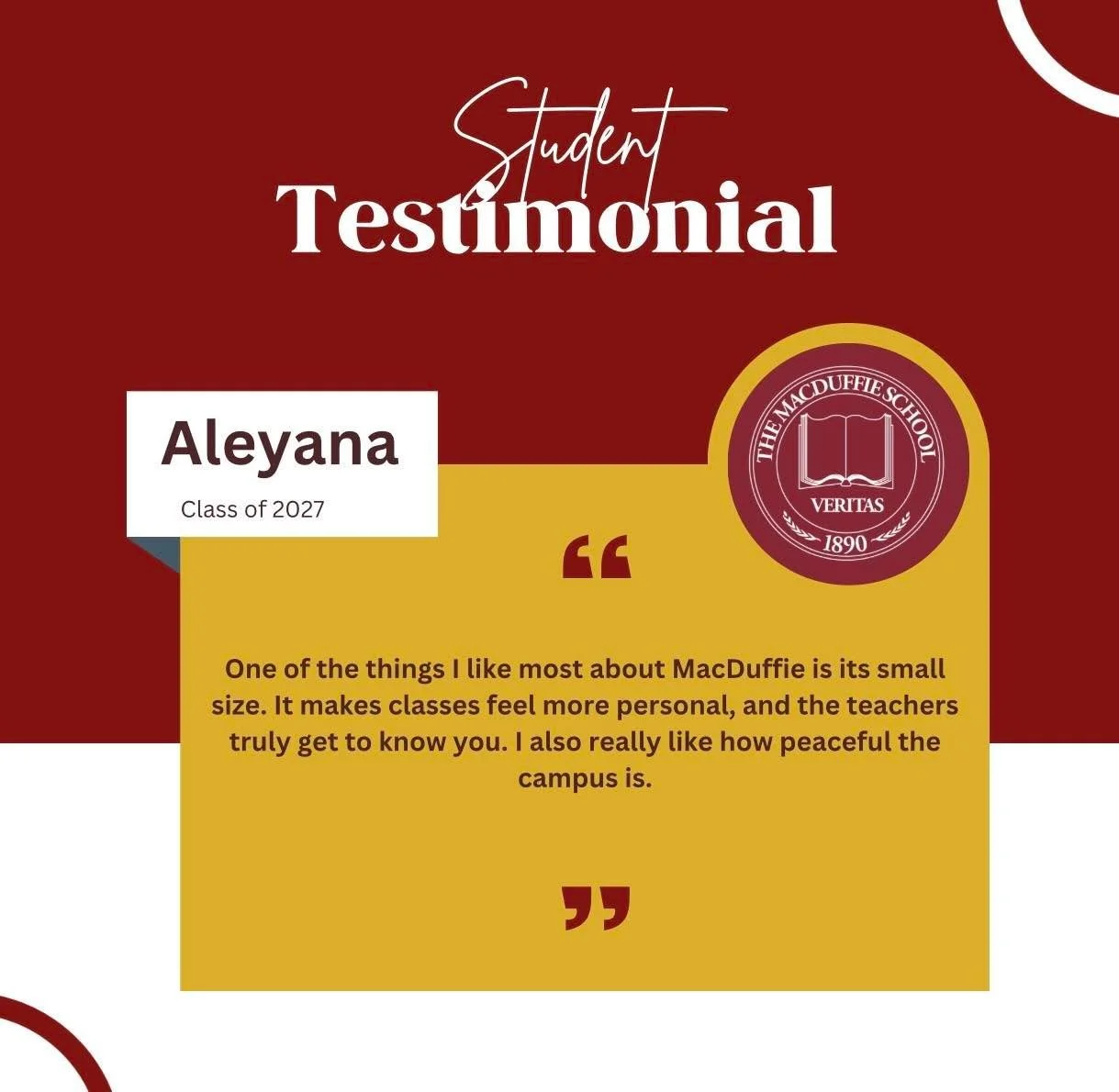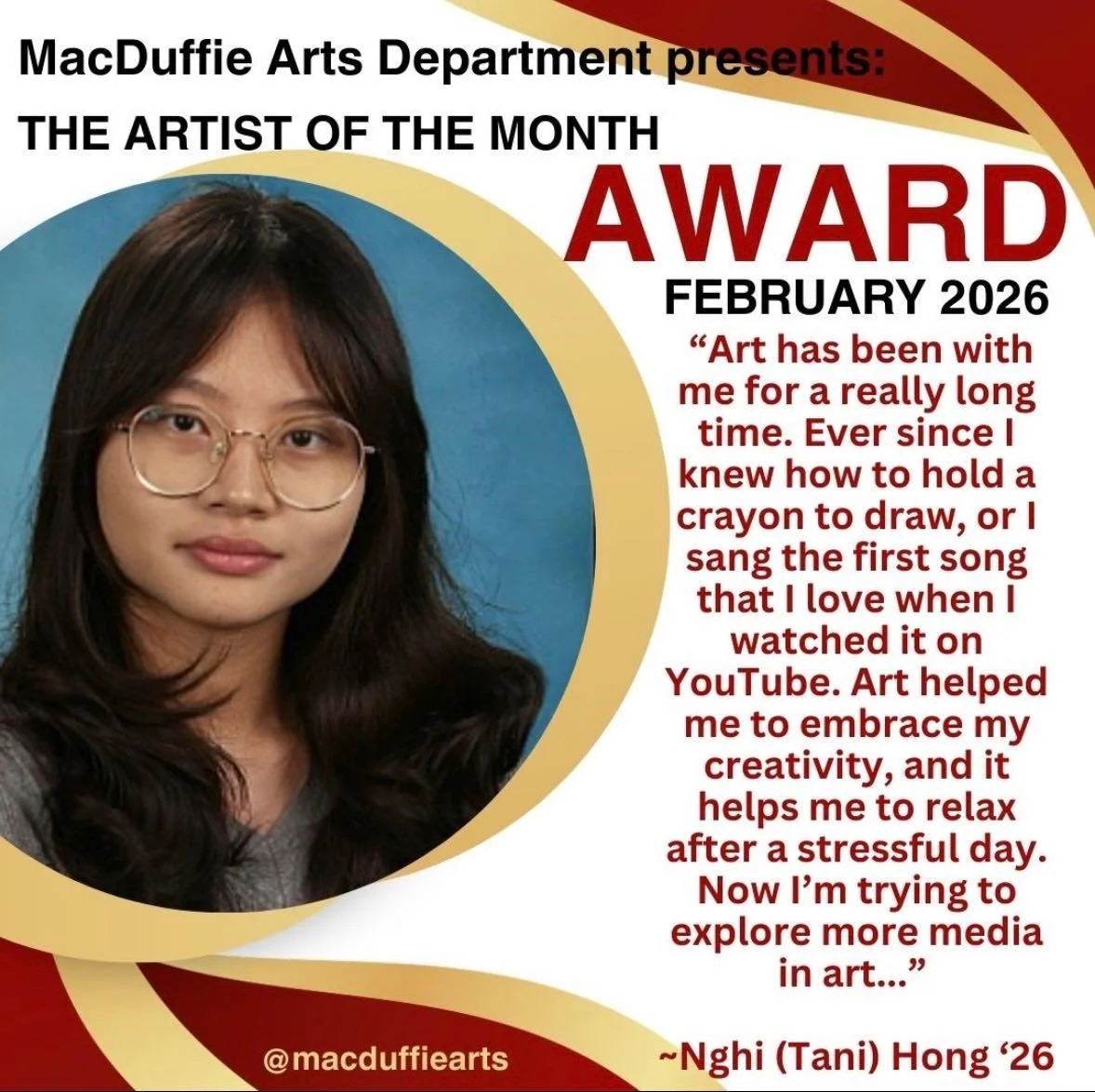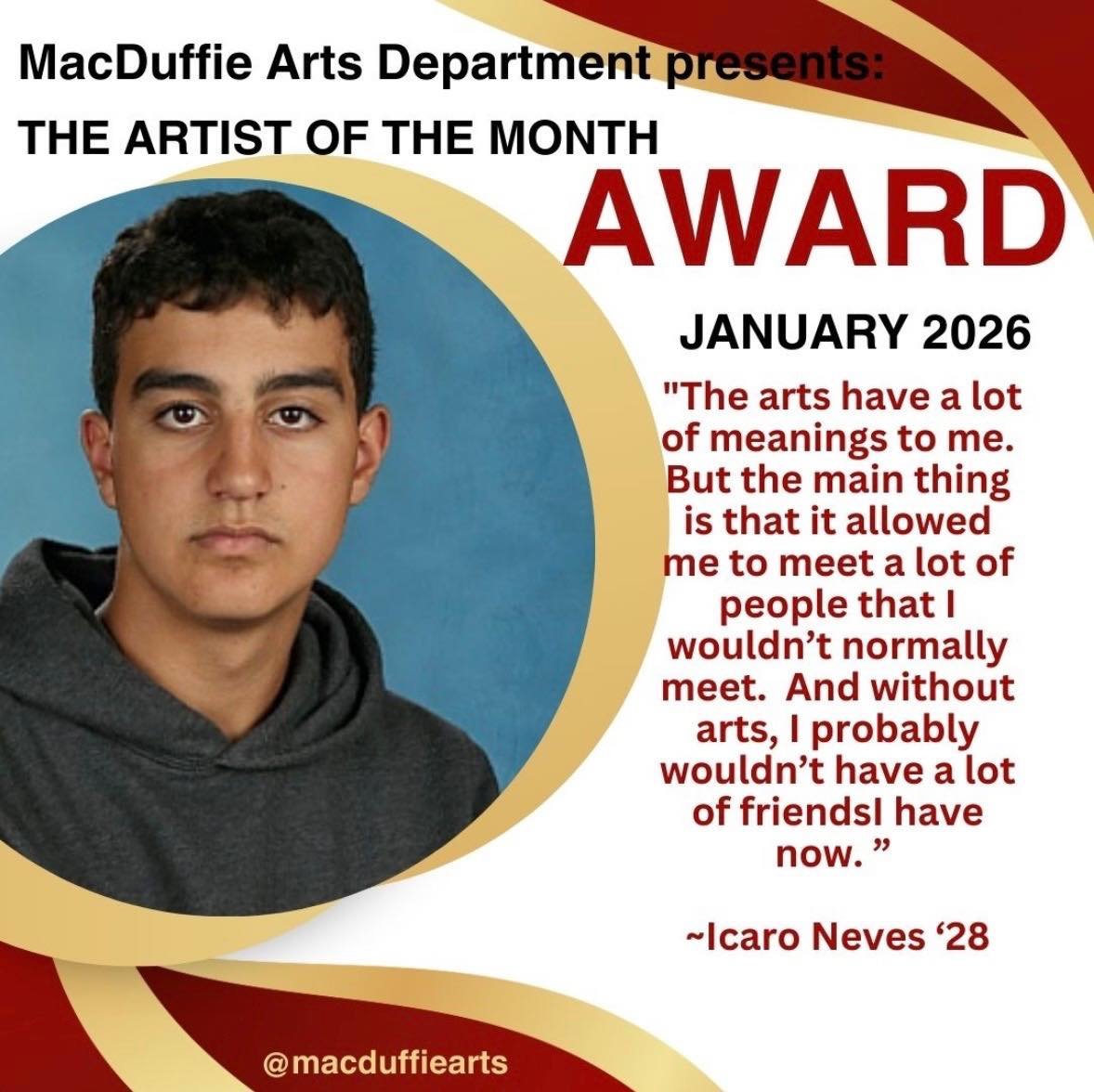 “I’m very grateful for the teachers and the community for teaching me so much throughout the years. MacDuffie’s college prep and counseling are also so great, so I strongly recommend this school!”